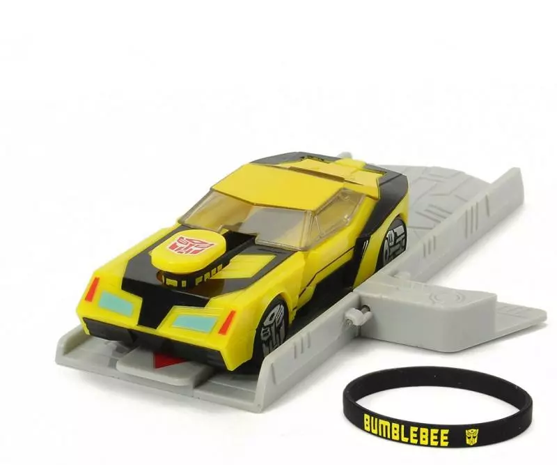 Transformers Mission Racer Bumblebee s vystřelovací rampou, zpětné natažení pomocí gumového pásku. Délka auta 11 cm. Výrobek není na baterie. Věk: 3+