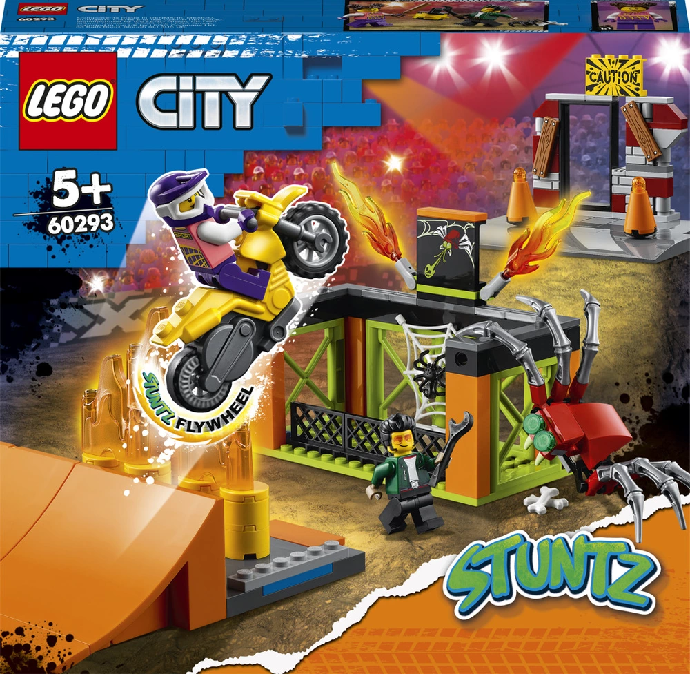 • Vyrazte na napínavé dobrodružství se stavebnicí kaskadérského tréninkového parku LEGO® City (60293). Můžete se těšit na motorku se setrvačníkem a spoustu doplňků a překážek pro přehrávání úžasných show.• Co děti najdou v krabici? Veškeré dílky potřebné k sestavení motorky se setrvačníkem a modulárního kaskadérského parku se 2 rampami, překážkami, ohněm a klecí s pavoukem. Také nechybí minifigurka Treada Octanea ze seriálu LEGO® City.• Děti rozjedou motorku se setrvačníkem a dají se do předvádění úžasných kousků. Stavebnici lze navíc kombinovat s dalšími modely LEGO® City Stuntz pro ještě více herních možností!• Inspirativní dárek k narozeninám či jakékoliv jiné příležitosti pro děti od 5 let. Malí stavitelé model snadno složí, takže hra začne téměř okamžitě!• Po sestavení měří model přes 10 cm na výšku, 30 cm na šířku a 13,5 cm do hloubky.• Tato sada se obejde bez baterií – pohání ji setrvačník a dětská představivost.• Sada obsahuje tištěné pokyny k sestavení modelů a návod Instructions PLUS, který je součástí bezplatné aplikace LEGO® s návody pro chytrá zařízení. Tento interaktivní průvodce dětem pomůže stát se ve stavění opravdovými mistry.• Stavebnice LEGO® City Stuntz zavedou děti do akčního světa kaskadérů, kde na ně čeká motorka se setrvačníkem a spousta realistických modelů a zábavných postav, které inspirují k přehrávání vzrušujících scénářů ze skutečného života.• Všechny dílky LEGO® splňují ty nejpřísnější oborové standardy, takže si můžete být jisti, že jsou kompatibilní a umožňují hladké spojování a rozebírání.• Kostky a dílky LEGO® City pouštíme na zem, zahříváme, drtíme, kroutíme a analyzujeme, abychom zajistili, že splňují striktní globální bezpečnostní standardy. Věk: 5+