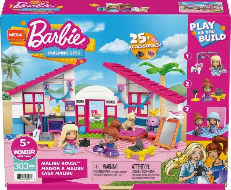 Objevte svět stavění s domem snů v Malibu. Nechte svoji fantazii, aby se ujala vedení při budování vašeho vysněného domova, nastěhujte do domečku nábytek a zařiďte ho krásnými doplňky. Připravte se ke spánku se 2 mikropanenkama Barbie ™ a rozkošným štěňátkem. Poté se vydejte do vlogovacího studia, kde vytvoříte zábavná videa. Tato snadno sestavitelná stavebnice pro začátečníky skýtá v každém kroku stavění spoustu zábavy. Ideální pro stavitele od 5 let věku.