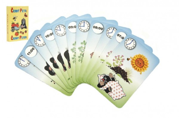 Hra Černý Petr s motivem Krtka. Karty jsou v papírové krabičce 6x9 cm. Vhodné od 3 let.