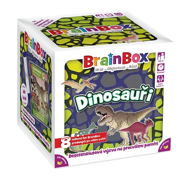 BrainBox je zábavná paměťová a postřehová karetní hra, která otestuje váš smysl pro detail. Odpovědi na všechny otázky máte přímo před sebou na kartě. Bude vám stačit 10 vteřin na to, abyste si všechno zapamatovali? Tato edice hry, věnovaná dinosaurům, vám představí tvory, kteří kdysi dávno vládli světu. Jak vysoký byl brachiosaurus? K čemu sloužil zobák triceratopse? Jaký je význam jména vulcanodon?
