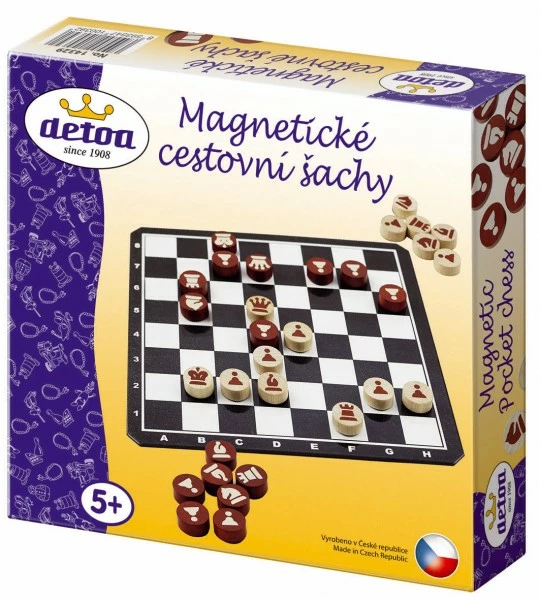 - Detoa Magnetické cestovní šachy dřevěné kameny společenská hra v krabici 20x20x4cm