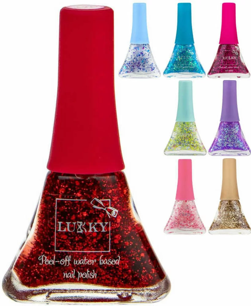 LUKKY slupovací lak na nehty na bázi vody se třpytkami. K odstranění laku není potřeba odlakovač. Lak jde jednoduše sloupnout. Lahvičku nelze vylít. Výrobek je vhodný pro děti od 3 let. Cena za 1 kus. SKLADEM ČERVENÝ A RŮŽOVÝ.
