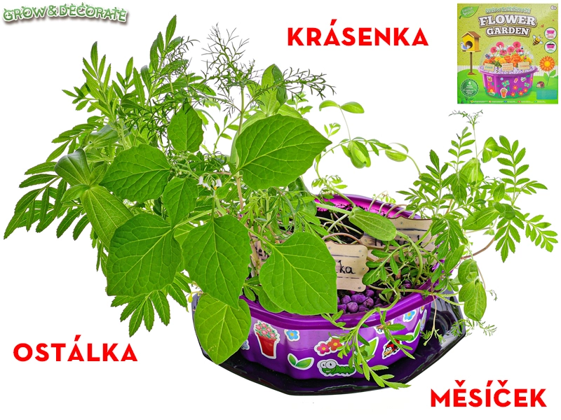 - Grow&decorate - 4druhy sazenic s doplňky v PVC květináči v krabičce
