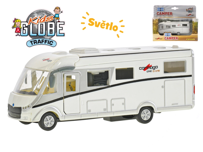 Kids Globe Traffic karavan Carthago 16cm kov zpětný chod na baterie se světlem v krabičceSKLADEM250 Kč/ ks207 Kč bez DPH