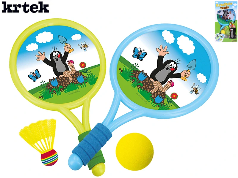 - Krtek tenisové rakety 40cm 2ks + míček a košík v krabičce