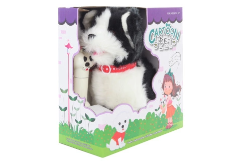 Pejsek na kabel o velikosti cca 20 x 24 x 10 cm. Pejsek se ovládá ovladačem na kabel. Stisknete-li levé tlačítko, pejsek půjde dozadu. Stisknete-li pravé tlačítko, pejsek půjde dopředu. Stisknete-li prostřední tlačítko, pejsek bude štěkat. Napájení ovladače na 2 AA baterie, napájení pejska na 4 AA baterie (nejsou součástí). Rozměry balení cca 23 x 24,5 x 11 cm. Věk 3+