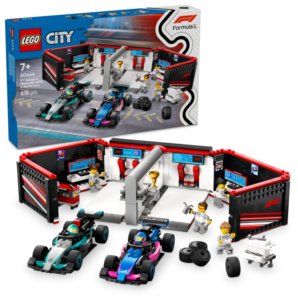Stavebnice LEGO® s garáží F1® – Se stavebnicí LEGO® City Garáž F1® a vozy Mercedes-AMG a Alpine si děti od 7 let užijí napínavé závody Formule 1