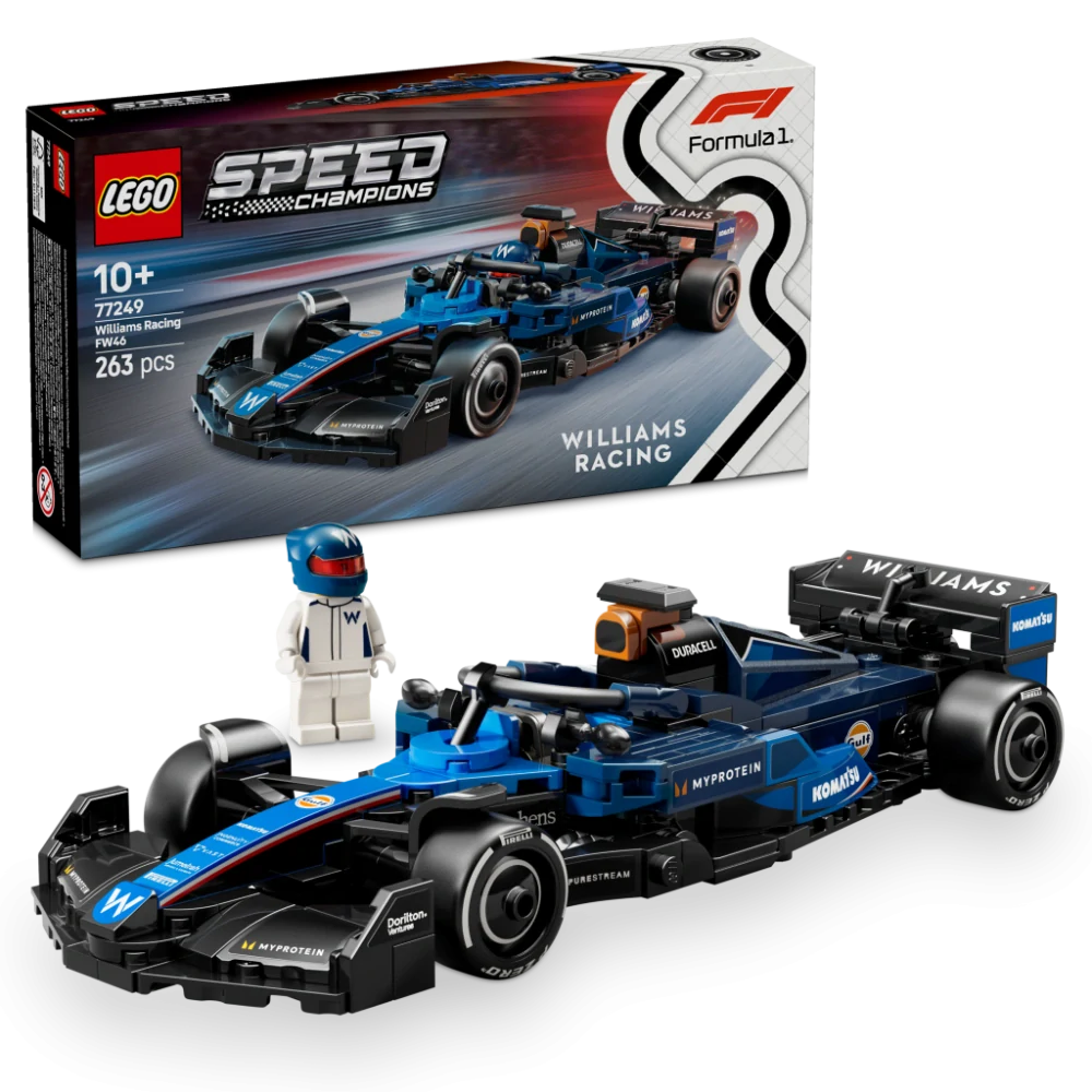 1 minifigurka – Tato stavebnice vozidla obsahuje minifigurku řidiče v outfitu Williams Racing s okřídlenou helmou, kterou děti usadí do kokpitu a vydají se s ní na napínavé závody