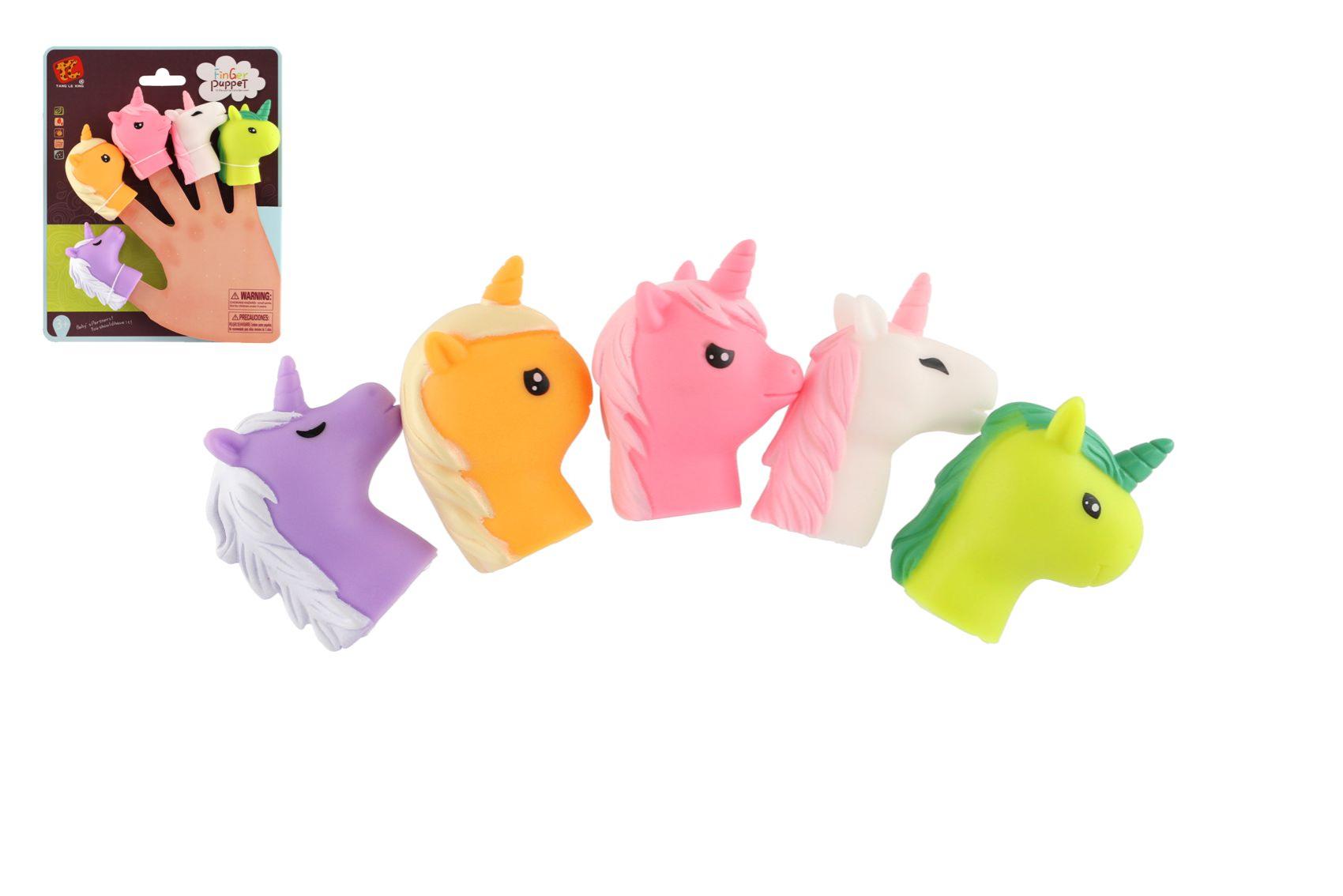 - Maňásek prstový jednorožec 5ks guma 6cm na kartě 16,5x20cm