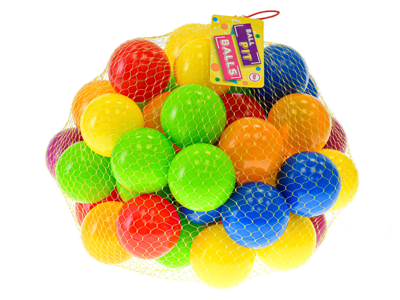 Míčky do hracích koutů 6cm 50ks v síťce. Věk: 10m+.