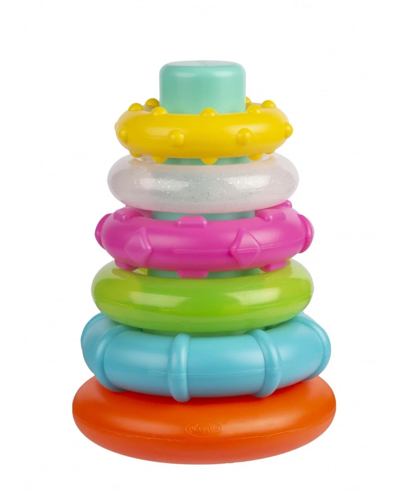 Kouzelná duha pěti kousatelných kroužků, které se snadno nasazují na kužel se stabilní základnou. Vaše dítě může třídit a stohovat kroužky, a poté jemně zatlačit na základnu, aby sledovalo, jak se kývá tam a zpět. Texturované stohovací kroužky od Playgro jsou nezbytností pro každé miminko. Jejich živé barvy a zábavný design je činí ideálními pro hraní a učení. Tento produkt je vhodný pro děti od 10 měsíců.