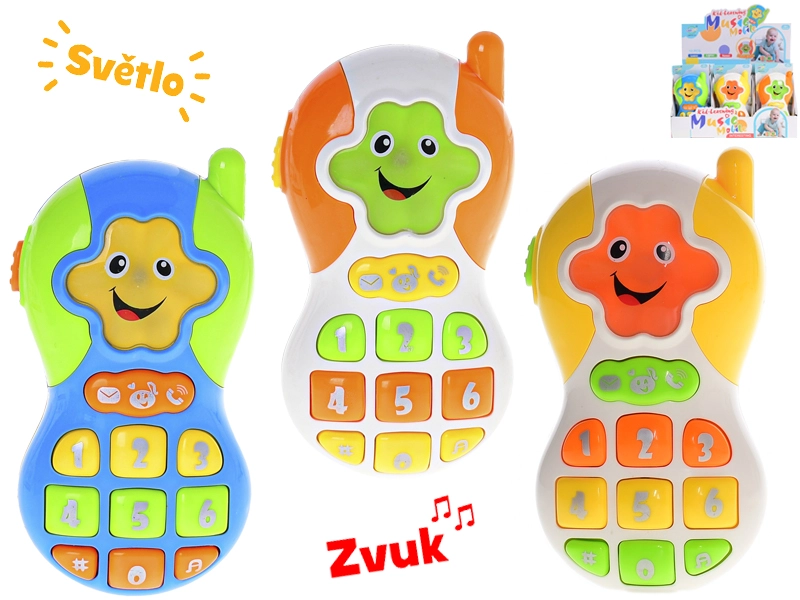 - Telefon 14cm na baterie se světlem a zvukem 18m+ 3barvy v krabičce